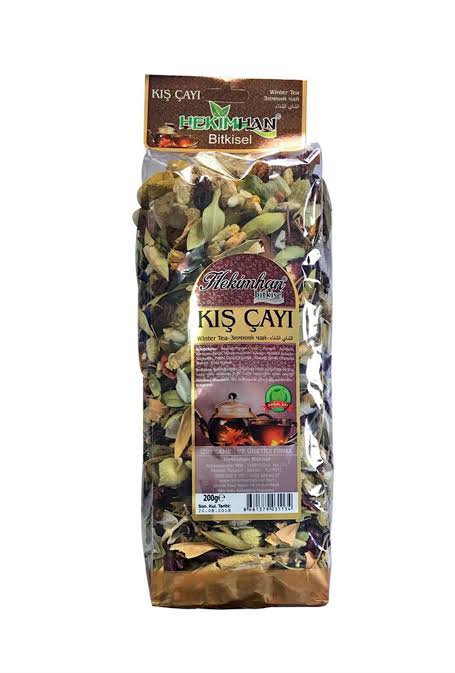 İçeriği: ıhlamur,zencefil,zerdeçal,havlıcan,tarçın,hibüsküs,limon kabuğu,portakal kabuğu,okaliptüs yaprağı,kuşburnu,hatmi çiçeği,papatya,adaçayı,kekik ve elma kurusu oluşan çok faydalı kış çayıdır.